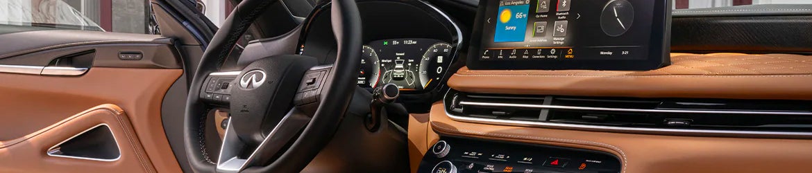 Connected and stylish, the QX60 is one of INFINITI's most tech-heavy models. The cabin is spacious and comfortably seats up to seven. A tri-zone automatic climate control and a panoramic moonroof help maximize comfort and brighten up the cabin. Higher trims get cutting-edge features like a power-adjustable steering wheel and massaging front seats.