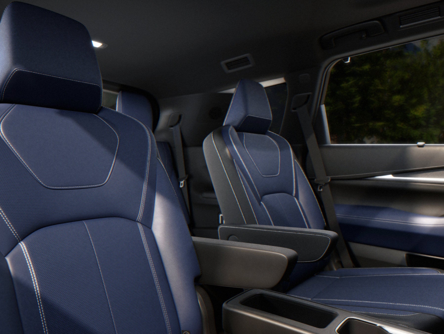 • Exclusive TailorFit® - appointed Dusk Blue seating with standard second-row captain’s chairs
