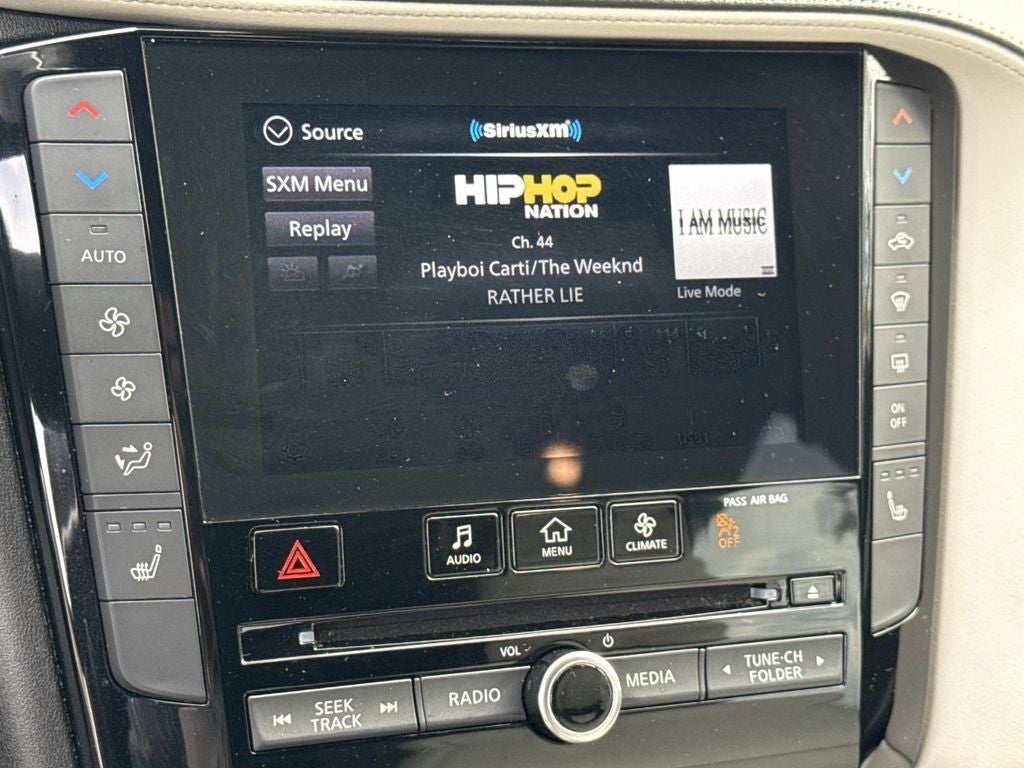 - Radio: AM/FM Audio System -inc: 6 speakers, INFINITI InTouch dual display system w/upper 8" and lower 7" HD touch screens, wireless Apple CarPlay and Android Auto, HD Radio technology, SiriusXM radio w/advanced audio features and 90-day complimentary trial, INFINITI voice recognition, INFINITI InTouch services, Siri eyes free and WiFi hotspot
